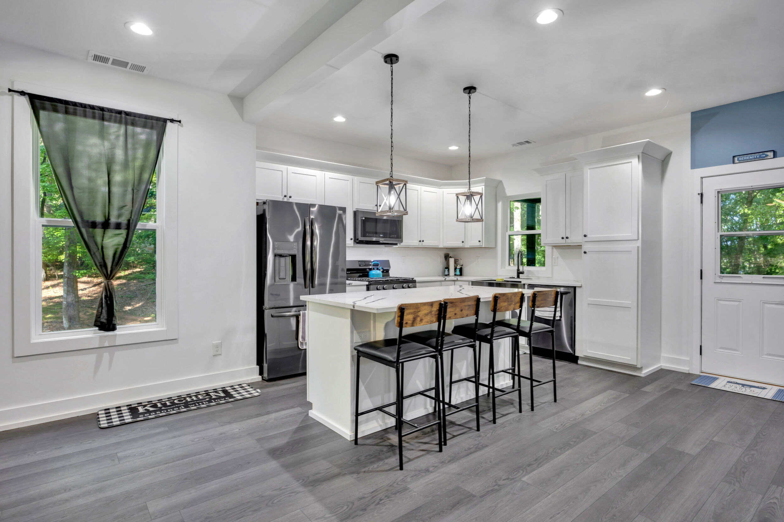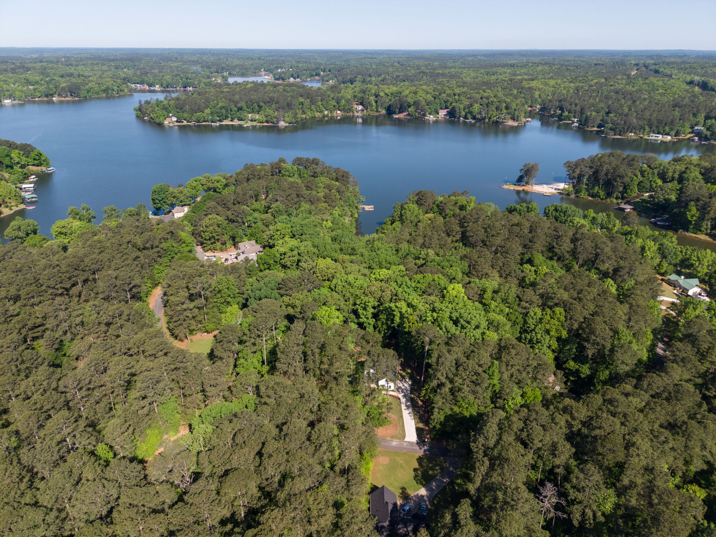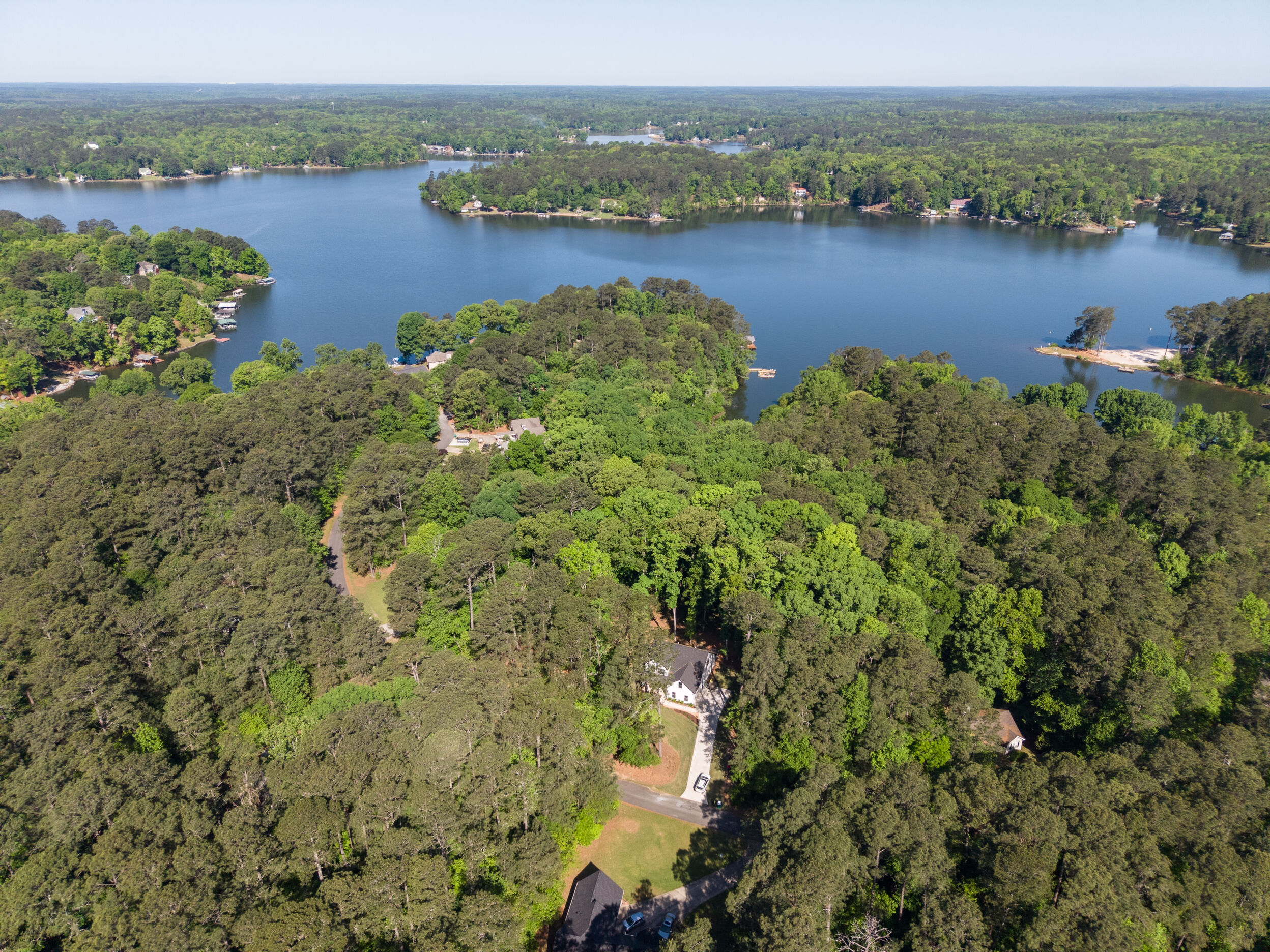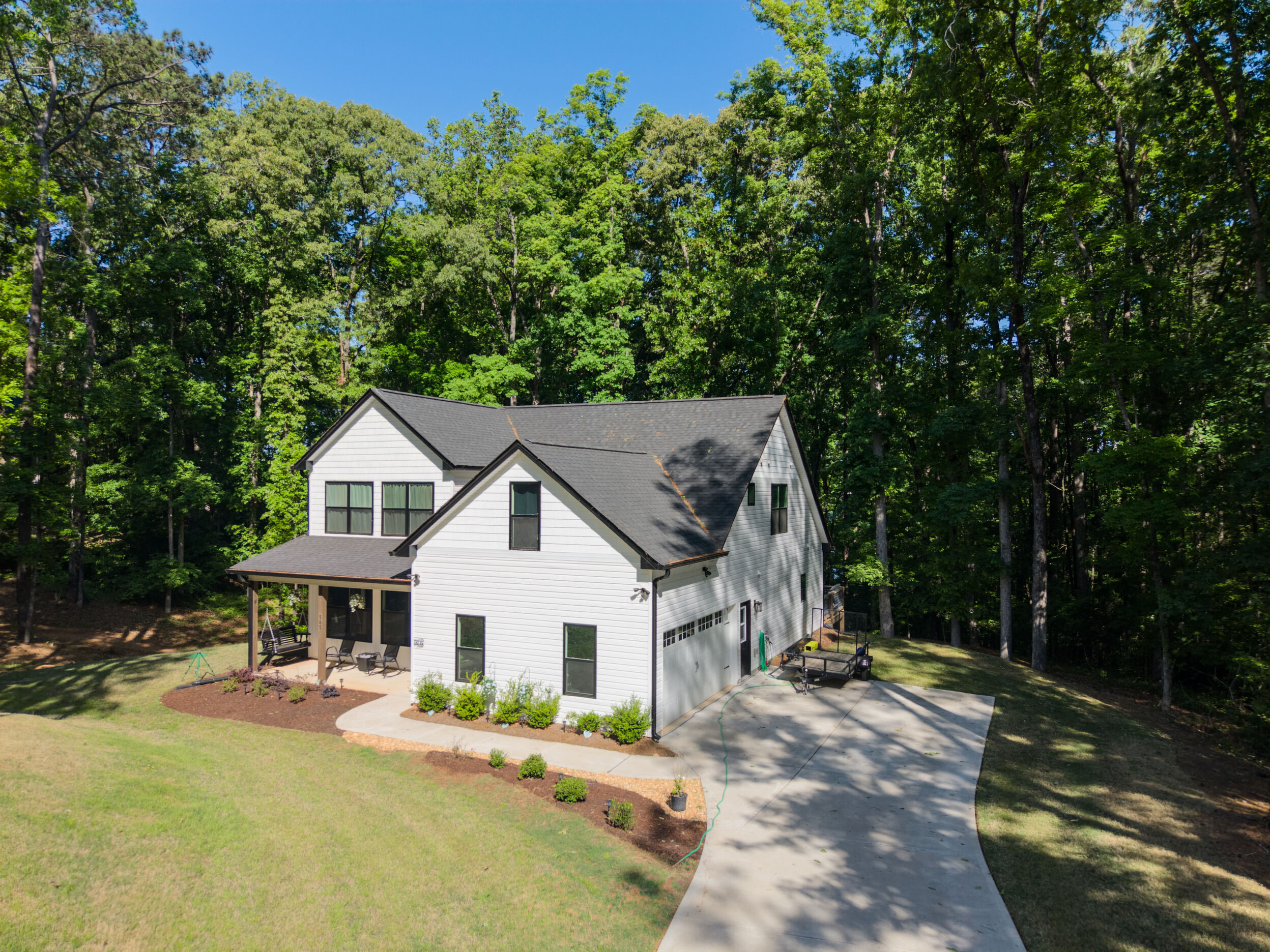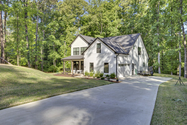 Beautiful classic craftsman two story nearly new construction home with 5-bedrooms & 3.5-bathrooms with seasonal views of the lake. This turnkey custom-built home on a double lot has direct access to Jackson Lake through the green space. The main floor of this home features LVP flooring throughout, custom electric heated fireplace & mantel, ceiling fans in every room, newer stainless-steel kitchen appliances all staying including the washer & dryer, dishwasher has never been used and all appliances are still under warranty, large kitchen island, quartz counter tops, oversized primary suite with walk-in closet, spa like ensuite with double vanity, linen closet and custom high-end wet room with a floating tub, floor to ceiling tile, dual shower heads including a rain shower head and heated bathroom/shower floors. Upstairs boasts heated floors throughout, dual zone HVAC, ceiling fans in every room, 4- bedrooms, a full bath with double vanity & a second ensuite with a full bath and ample closet space in the bedroom closets, The garage that includes remote doors and RV hook up has plenty of room for your automobiles and also includes a pet washing station with a full-size tub. Outside features fresh landscaping, outdoor lighting including sensor lights over the garage, rocking chair front porch, screened in porch in the back with ceiling fan and 30-50amp and large deck overlooking your private backyard with access to the lake. Other upgrades include a 12-ton dual zoned HVAC, 2 septic tanks in place for a total of 2700 gallons, plywood flooring in the attic for additional storage along with a gigantic storage area that runs behind the 2nd floor bedrooms that spans the entire length of the rear of the house, propane for the stove & there is also a 2/10 outlet for an electric stove hookup and leaf guards installed on all the gutters. The roof also has a 25-year warranty! You can fish, hangout & enjoy the peace of living near the water. All furniture can stay with an accepted offer! Owners may sell their amenities on the additional lot. Located in sought after Turtle Cove - Jackson Lake Community! Turtle Cove includes 5 white sand beaches some with boat ramps, pickle ball courts, golf, huge community pool partially covered with a full-service bar and restaurant.