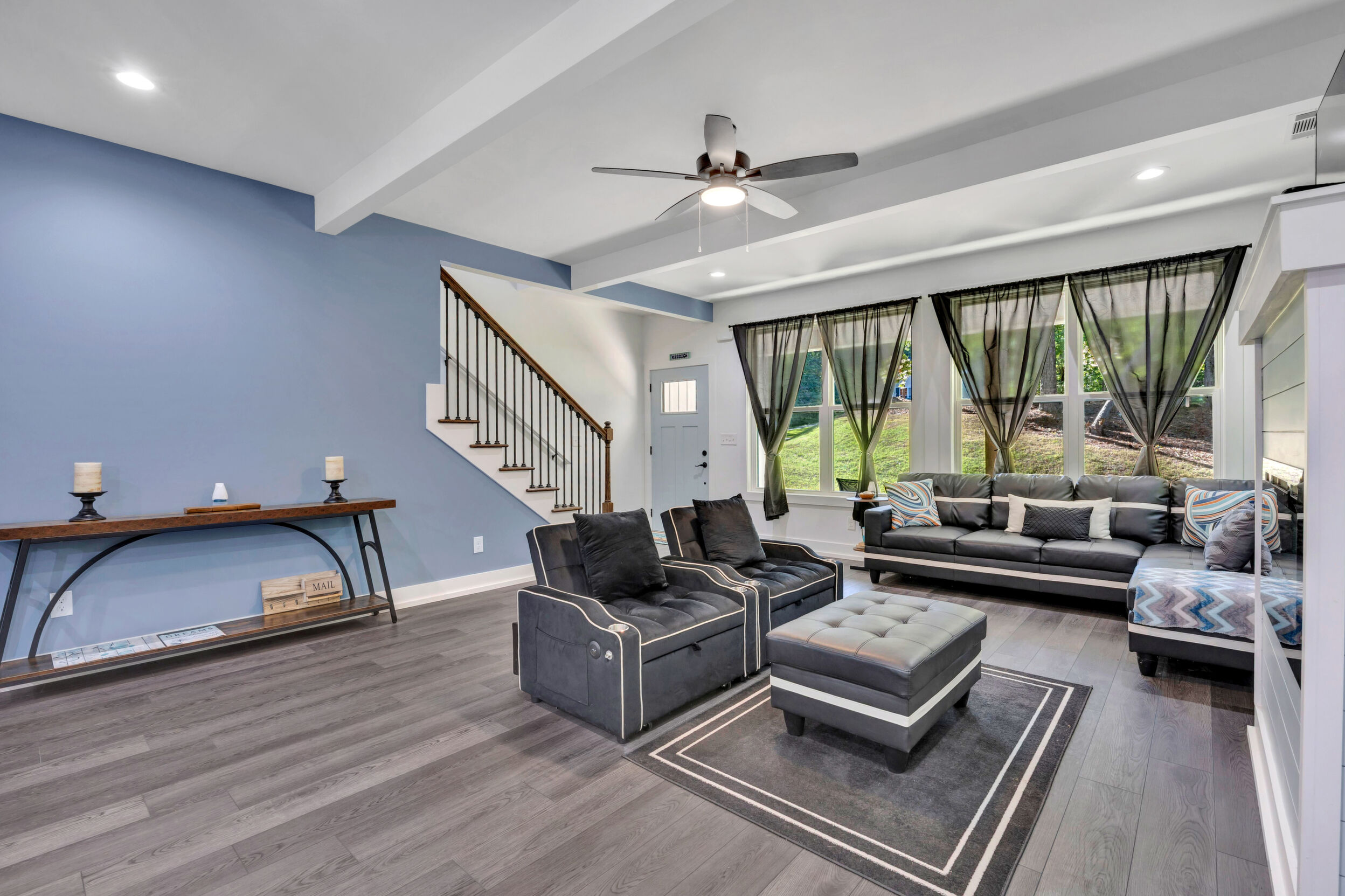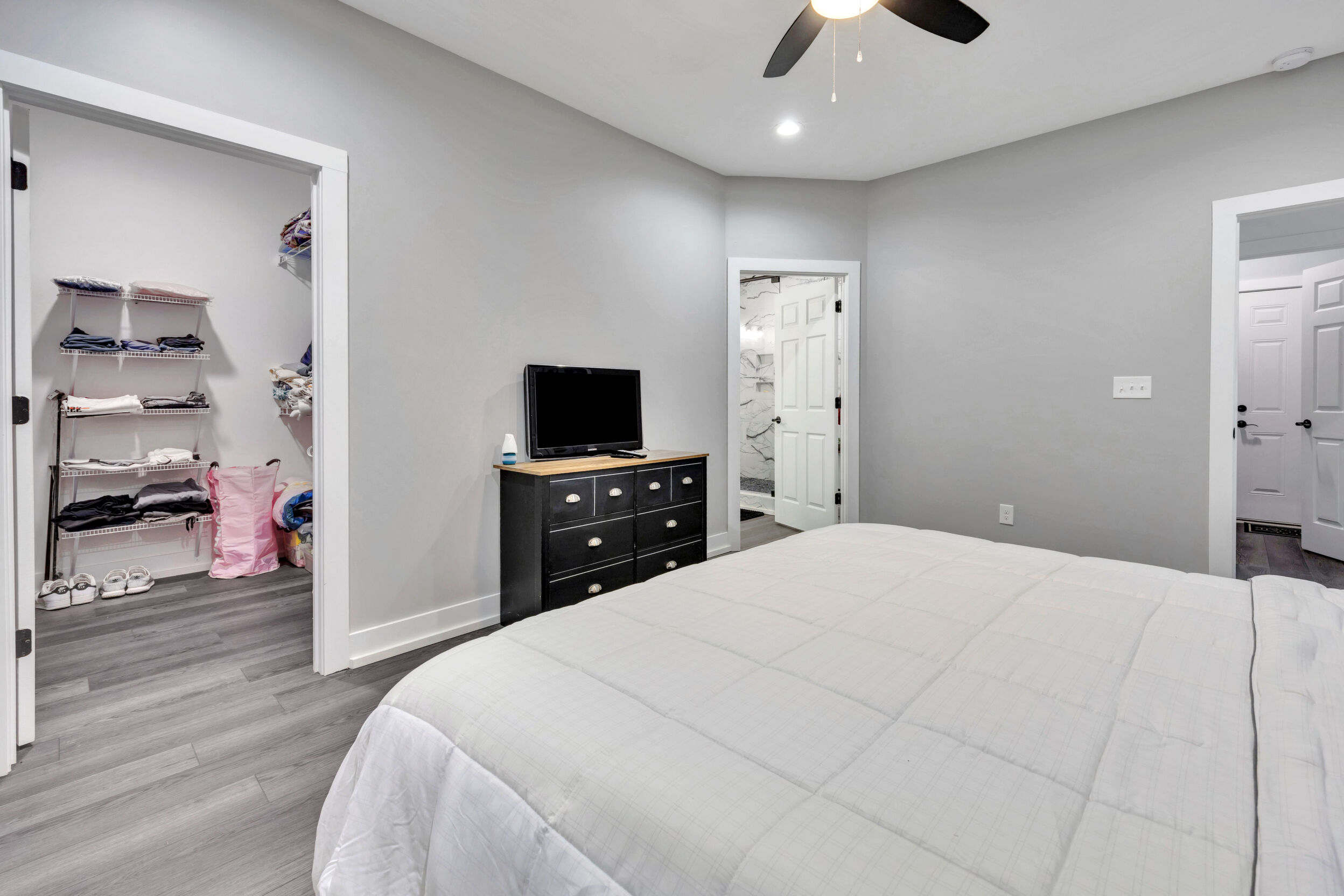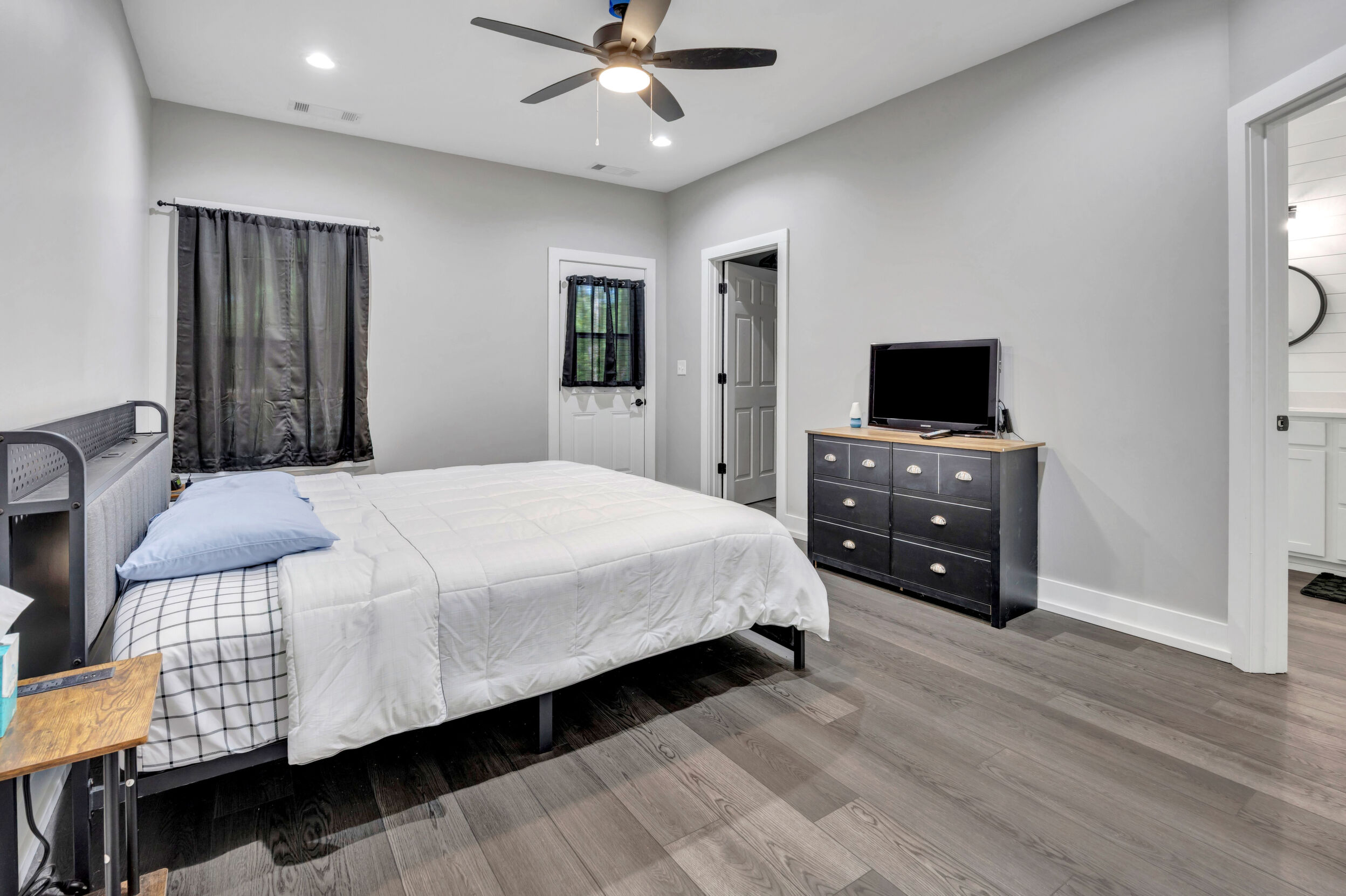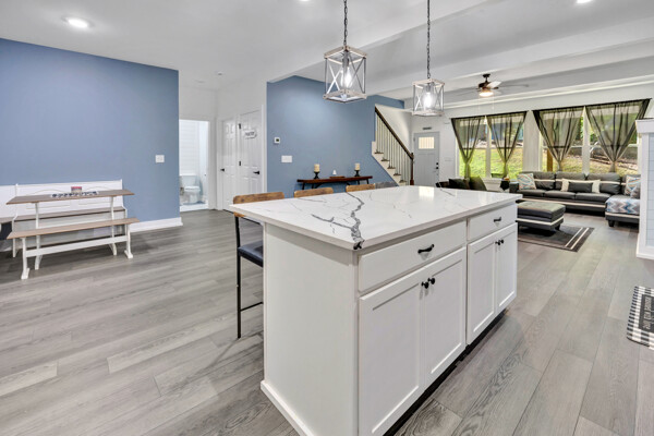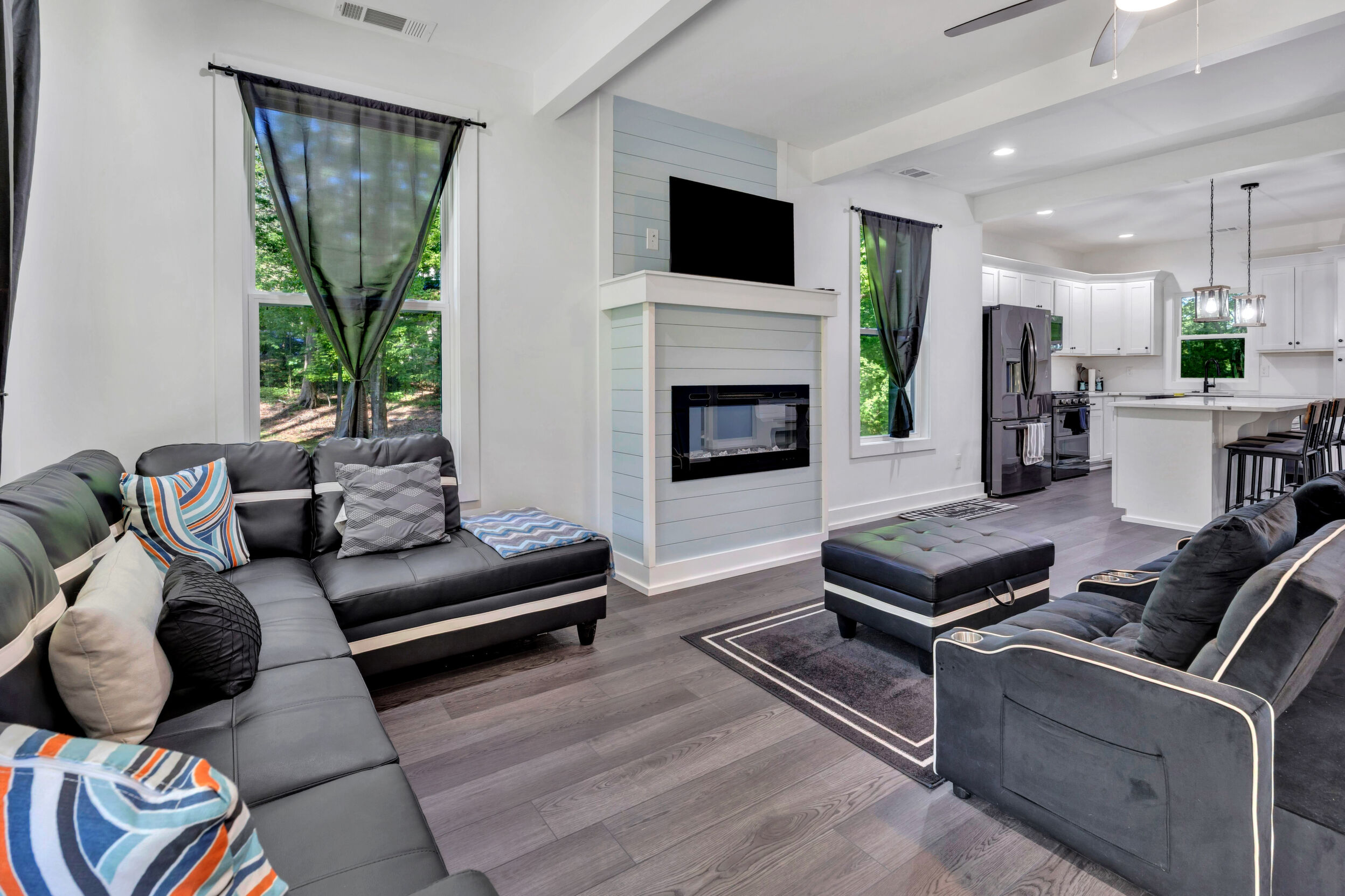 Beautiful classic craftsman two story nearly new construction home with 5-bedrooms & 3.5-bathrooms with seasonal views of the lake. This turnkey custom-built home on a double lot has direct access to Jackson Lake through the green space. The main floor of this home features LVP flooring throughout, custom electric heated fireplace & mantel, ceiling fans in every room, newer stainless-steel kitchen appliances all staying including the washer & dryer, dishwasher has never been used and all appliances are still under warranty, large kitchen island, quartz counter tops, oversized primary suite with walk-in closet, spa like ensuite with double vanity, linen closet and custom high-end wet room with a floating tub, floor to ceiling tile, dual shower heads including a rain shower head and heated bathroom/shower floors. Upstairs boasts heated floors throughout, dual zone HVAC, ceiling fans in every room, 4- bedrooms, a full bath with double vanity & a second ensuite with a full bath and ample closet space in the bedroom closets, The garage that includes remote doors and RV hook up has plenty of room for your automobiles and also includes a pet washing station with a full-size tub. Outside features fresh landscaping, outdoor lighting including sensor lights over the garage, rocking chair front porch, screened in porch in the back with ceiling fan and 30-50amp and large deck overlooking your private backyard with access to the lake. Other upgrades include a 12-ton dual zoned HVAC, 2 septic tanks in place for a total of 2700 gallons, plywood flooring in the attic for additional storage along with a gigantic storage area that runs behind the 2nd floor bedrooms that spans the entire length of the rear of the house, propane for the stove & there is also a 2/10 outlet for an electric stove hookup and leaf guards installed on all the gutters. The roof also has a 25-year warranty! You can fish, hangout & enjoy the peace of living near the water. All furniture can stay with an accepted offer! Owners may sell their amenities on the additional lot. Located in sought after Turtle Cove - Jackson Lake Community! Turtle Cove includes 5 white sand beaches some with boat ramps, pickle ball courts, golf, huge community pool partially covered with a full-service bar and restaurant.