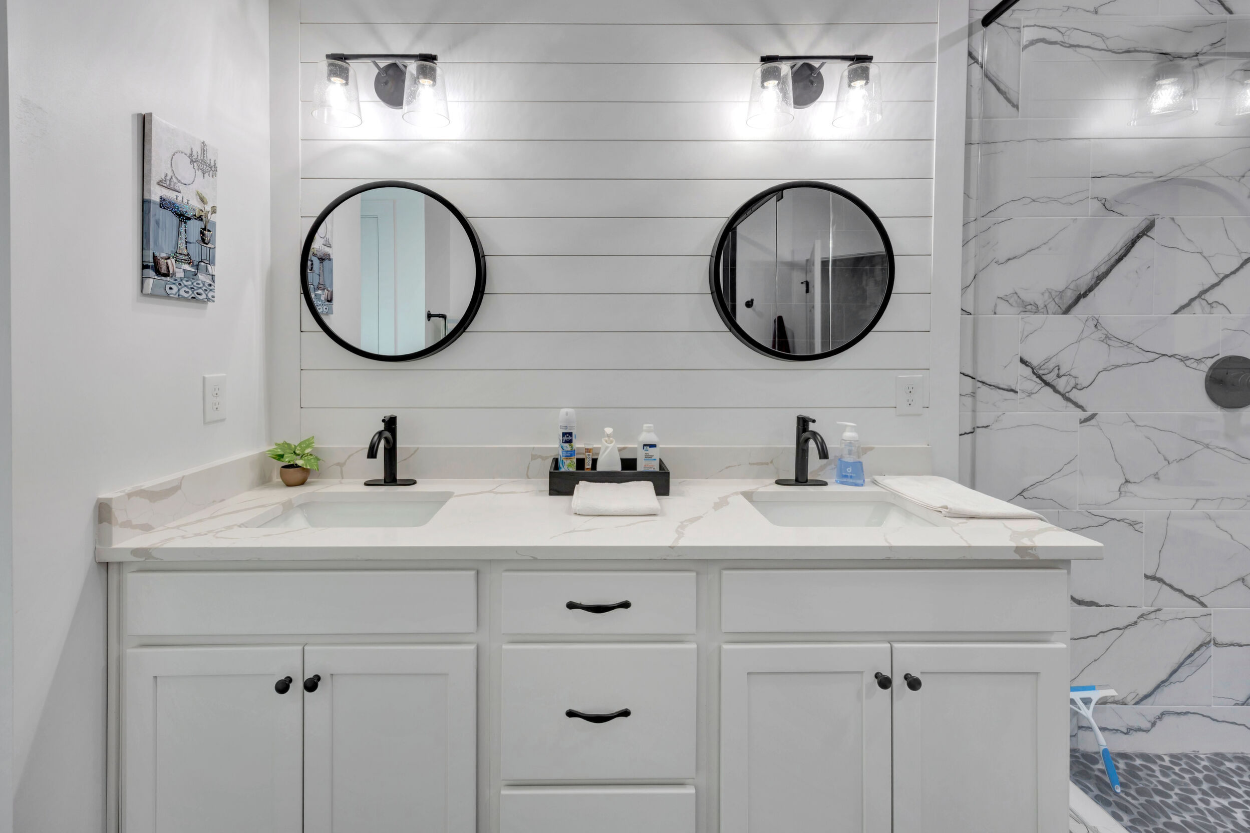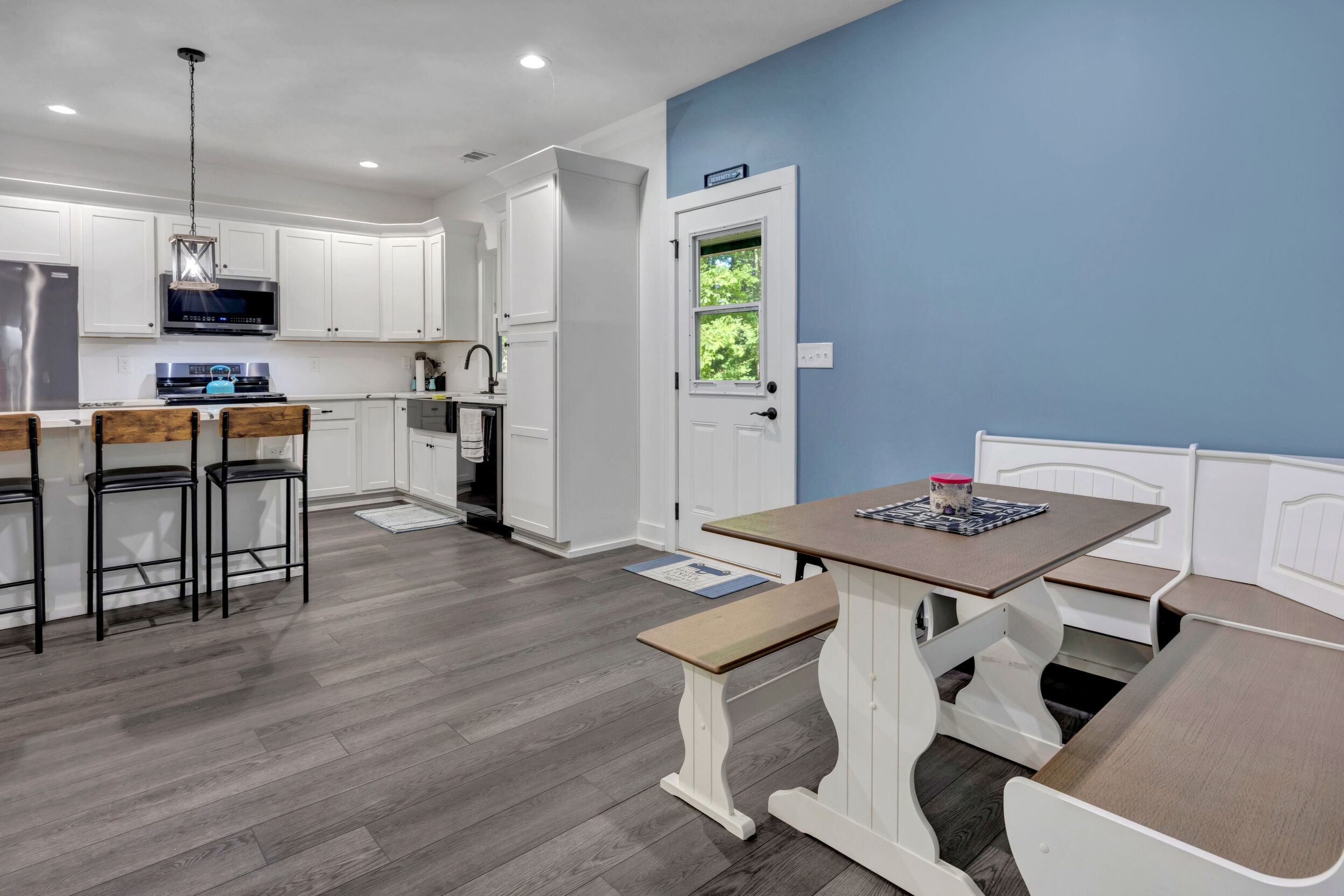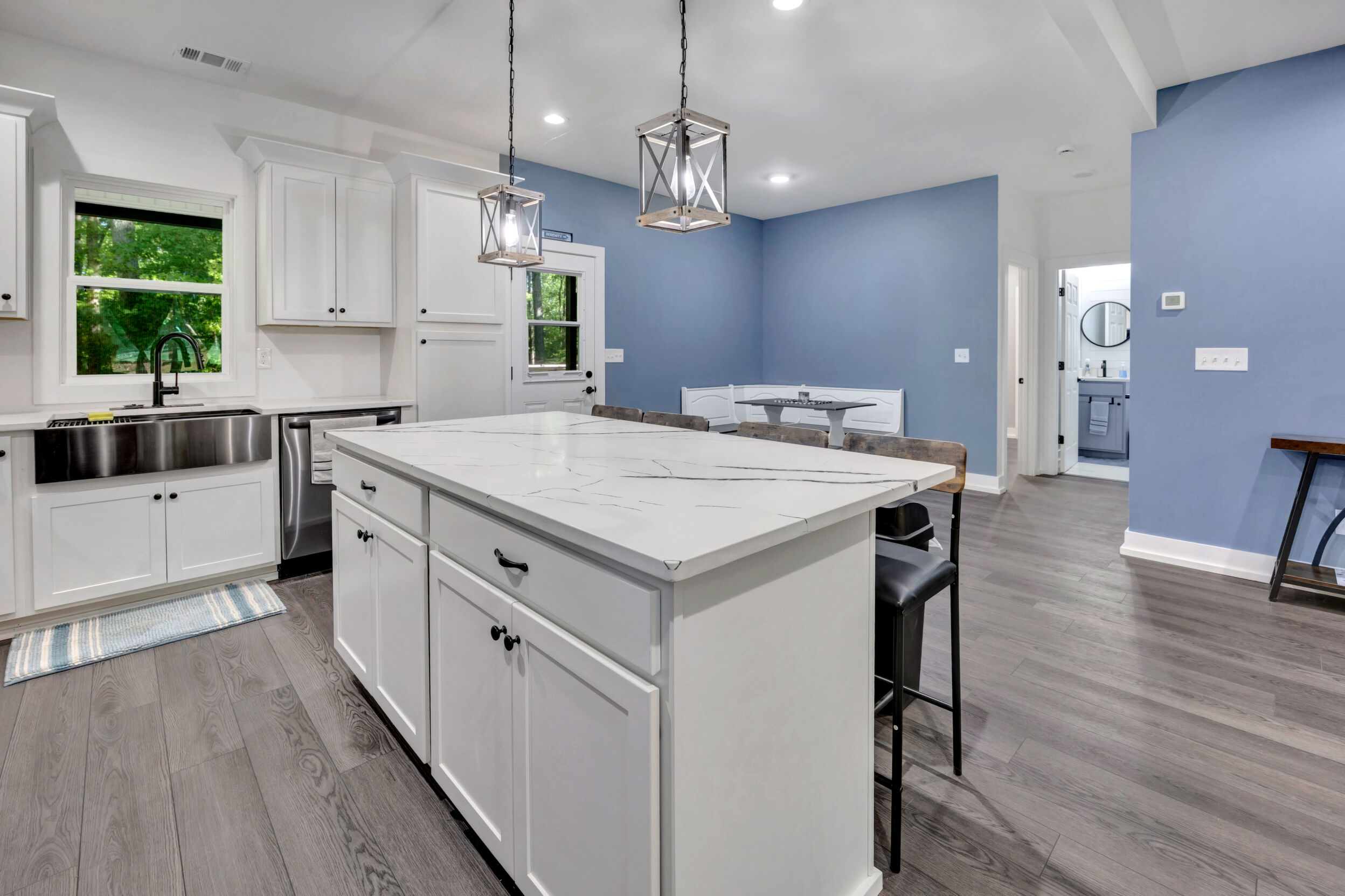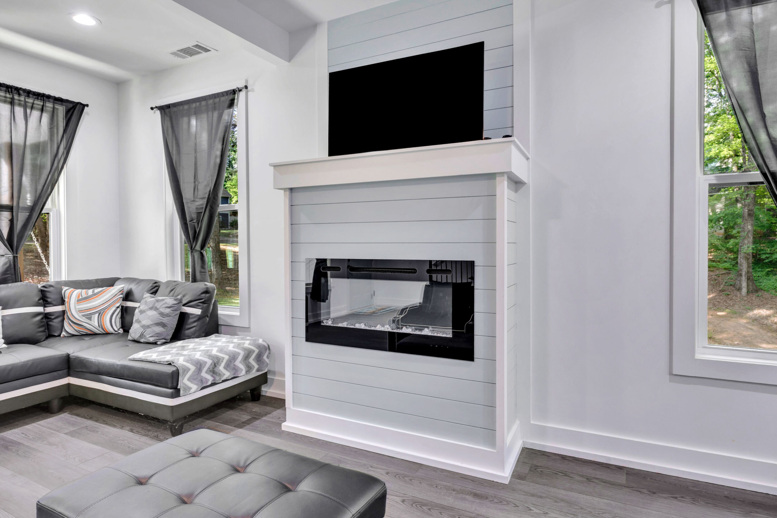 Beautiful classic craftsman two story nearly new construction home with 5-bedrooms & 3.5-bathrooms with seasonal views of the lake. This turnkey custom-built home on a double lot has direct access to Jackson Lake through the green space. The main floor of this home features LVP flooring throughout, custom electric heated fireplace & mantel, ceiling fans in every room, newer stainless-steel kitchen appliances all staying including the washer & dryer, dishwasher has never been used and all appliances are still under warranty, large kitchen island, quartz counter tops, oversized primary suite with walk-in closet, spa like ensuite with double vanity, linen closet and custom high-end wet room with a floating tub, floor to ceiling tile, dual shower heads including a rain shower head and heated bathroom/shower floors. Upstairs boasts heated floors throughout, dual zone HVAC, ceiling fans in every room, 4- bedrooms, a full bath with double vanity & a second ensuite with a full bath and ample closet space in the bedroom closets, The garage that includes remote doors and RV hook up has plenty of room for your automobiles and also includes a pet washing station with a full-size tub. Outside features fresh landscaping, outdoor lighting including sensor lights over the garage, rocking chair front porch, screened in porch in the back with ceiling fan and 30-50amp and large deck overlooking your private backyard with access to the lake. Other upgrades include a 12-ton dual zoned HVAC, 2 septic tanks in place for a total of 2700 gallons, plywood flooring in the attic for additional storage along with a gigantic storage area that runs behind the 2nd floor bedrooms that spans the entire length of the rear of the house, propane for the stove & there is also a 2/10 outlet for an electric stove hookup and leaf guards installed on all the gutters. The roof also has a 25-year warranty! You can fish, hangout & enjoy the peace of living near the water. All furniture can stay with an accepted offer! Owners may sell their amenities on the additional lot. Located in sought after Turtle Cove - Jackson Lake Community! Turtle Cove includes 5 white sand beaches some with boat ramps, pickle ball courts, golf, huge community pool partially covered with a full-service bar and restaurant.